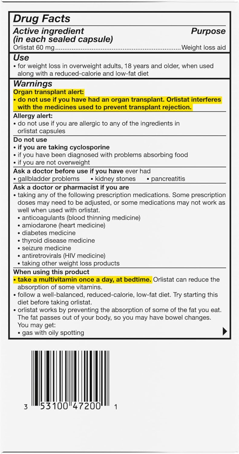 alli Diet Weight Loss Supplement Pills, Orlistat 60Mg Capsules