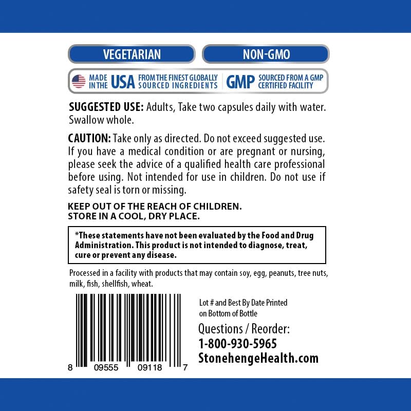 Stonehenge Health strives to maximize each formula's effectiveness, perfecting each dose with the highest potency and purity of ingredients. We manufacture all our products in small batches to ensure superior quality. And our products are formulated in the USA and produced follows strict Good Manufacturing Practices (cGMP).